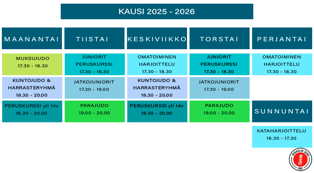 Syyskausi | 150 € | Maksu Mikkelin Judon pankkitilille: FI69 5271 0420 0708 81 Viite: Harrastajan nimi |