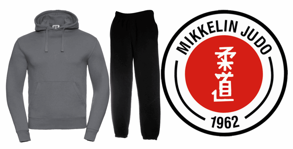 Tuotteet voi tilata joko yhdessä tai erikseen. Erikseen tilattuna Huppari 50€, housut 40€ tai yhdessä 80€.Tilauslista löytyy Kamppailuareenalta Mikkelin Judon ilmoitustaululta.